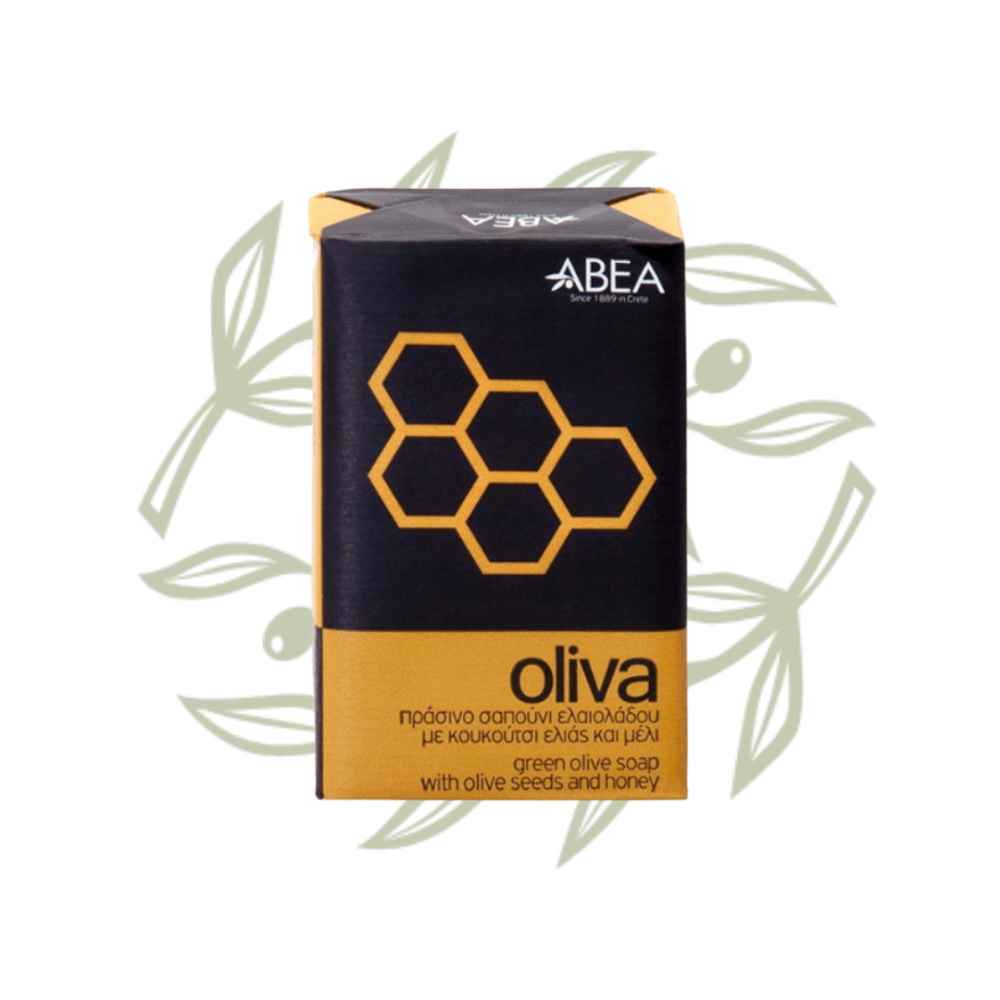 Mýdla řady OLIVA od ABEA. Zelené mýdlo s olivovým olejem, medem a olivovými semínky pro jemný peeling. Obsahuje vitamíny a E a D pro přirozené ošetření pokožky.